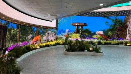 ¶ÇÇÑ °¡·Î 25m, ¼¼·Î 5.4mÀÇ ´ëÇü ½ºÅ©¸°Àº 320¡¿160§®ÀÇ LED¸ðµâ 2,000°³ ÀÌ»óÀ» Á¶ÇÕÇÑ ÃʰíÈ­Áú LED Ä¿ºêµå È­¸éÀ¸·Î »öäÀÇ ¼±¸íµµ¿Í ¸ôÀÔ°¨À¸·Î °ü¶÷°´µéÀÇ Åº¼ºÀ» ÀھƳ½´Ù.