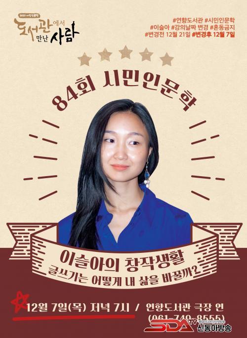 [½Åµ¿¾Æ¹æ¼Û ¼øÃµ=±è¿ëÈÆ ±âÀÚ] ¼øÃµ½Ã(½ÃÀå ³ë°ü±Ô)´Â ½Ã¹ÎÀι®ÇС®µµ¼­°ü¿¡¼­ ¸¸³­ »ç¶÷¡¯ÀÇ 2023³â ¸¶Áö¸· °­¿¬À» ¿À´Â 12¿ù 7ÀÏ ¼øÃµ½Ã¸³¿¬Çâµµ¼­°ü ±ØÀå¿¡¼­ °³ÃÖÇÑ´Ù.