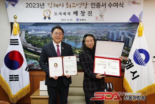 [½Åµ¿¾Æ¹æ¼Û´º½º=±èÁÖ¿¬±âÀÚ] ±èÇØ½Ã(½ÃÀå ȫſë)´Â Áö³­ 5ÀÏ 2023³â ±èÇØ½Ã ÃÖ°í¸íÀåÀ¸·Î ¼±Á¤µÈ µµÀÚÁ¦ÀÛ ºÎ¹® ¹èâÁø(51¼¼, 2´ëÅ䱤µµ¿¹ ´ëÇ¥) ¸íÀå¿¡°Ô ÀÎÁõ¼­¿Í ÀÎÁõÆÐ¸¦ ¼ö¿©Çß´Ù.