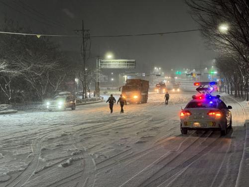 ´ÊÀº ¹ã ´«±æ¿¡ ÁÖÇàÇÏÁö ¸øÇÏ°í ÆÈºÀµ¿ Á¾ÇտÀå µµ·Î Àαٿ¡¼­ ¸ØÃç ¼¹´ø ´ëÇü È­¹°Æ®·° ¿©·¯ ´ë°¡ ¼Óµµ°¨ ÀÖ´Â Á¦¼³ÀÛ¾÷ ´öºÐ¿¡ ¿îÇàÀ» Á¤»ó Àç°³Çϱ⵵ Çß´Ù.
