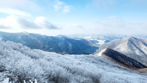 ÄÉÀ̺íÄ«¸¦ Ÿ°í ¿Ã¶ó°¥ ¼ö ÀÖ´Â °í°èºÀ(638m)¿¡´Â ´«ÀÌ ±×Ä¡ÀÚ¸¶ÀÚ ¸¹Àº °ü±¤°´µéÀÌ Ã£¾Æ Ǫ±ÙÇÏ°í °í¿äÇÑ °Ü¿ï»êÀÇ Á¤Ã븦 ¸¸³£Çß´Ù.