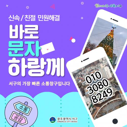 [½Åµ¿¾Æ¹æ¼Û=ÀÌÁöÇö±âÀÚ] ±¤ÁÖ±¤¿ª½Ã ¼­±¸(±¸Ã»Àå ±èÀ̰­)´Â 20ÀÏ ±¸Ã»ÀåÀÌ Á÷Á¢ È®ÀÎÇÏ°í ´äÇÏ´Â Á÷Åë ¹®ÀÚÆù ¡®¹Ù·Î¹®ÀÚÇ϶û²²(010-3080-8249)¡¯ ½ÃÇà 500ÀÏÀ» ¸Â¾Æ Á¢¼ö ¹®ÀÚ ÇöȲÀ» ºÐ¼®ÇÑ °á°ú ÇàÁ¤¿¡ ´ëÇÑ ºÒ¸¸°ú ¹®Á¦ ÁöÀû µî Ç×ÀǼº ¹Î¿ø ºñÀ²ÀÌ Á¡Â÷ ÁÙ¾îµé°í ÀÖ´Â ¹Ý¸é °¨»ç¿Í ĪÂù ¹®ÀÚ°¡ Å©°Ô ´Ã°í ÀÖ´Ù°í ¹àÇû´Ù.