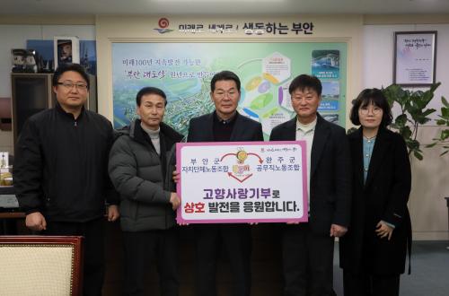 [½Åµ¿¾Æ¹æ¼Û=À¯¸íÁø±âÀÚ] ºÎ¾È±ºÀº Áö³­ 20ÀÏ ºÎ¾È±º ÀÚÄ¡´Üü³ëÁ¶¿Í ¿ÏÁÖ±º °ø¹«Á÷³ëÁ¶°¡ °ÇÀüÇÑ ±âºÎ¹®È­ Á¶¼º°ú »óÈ£ »ó»ý¹ßÀüÀ» À§ÇØ °íÇâ»ç¶û±âºÎ±Ý °¢°¢ 200¸¸¿øÀ» ±âºÎÇß´Ù°í ¹àÇû´Ù.