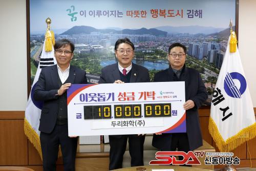 [½Åµ¿¾Æ¹æ¼Û´º½º=ÃÖ¼ÛÈ­±âÀÚ] ±èÇØ½Ã(½ÃÀå ȫſë)´Â 20ÀÏ µÎ¸®È­ÇÐ(ÁÖ)(´ëÇ¥ ÃÖ¹é±Ô)¿¡¼­ ¾î·Á¿î ÀÌ¿ôÀ» À§ÇØ ½á´Þ¶ó¸ç ¼º±Ý 1,000¸¸¿øÀ» ±âŹÇß´Ù°í ¹àÇû´Ù.