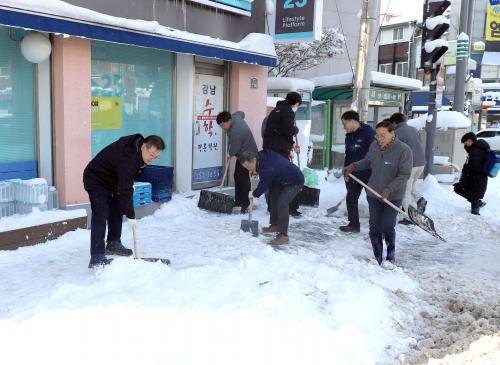°­ÃßÀ§ ¼Ó¿¡¼­µµ °ø¹«¿øµéÀº ÃâÅð±Ù, µî±·±æ ÅëÇà ºÒÆí ÇØ¼Ò ¹× ºùÆÇ±æ ³«»ó ¹æÁö µî ±º¹ÎÀÇ ¾ÈÀüÀ» À§ÇØ »ó°¡ ÁÖº¯, ½Â°­Àå ¾Õ, Àεµ µî ½Ã°¡Áö °÷°÷¿¡ ½×ÀÎ ´«À» Ä¡¿ü´Ù.