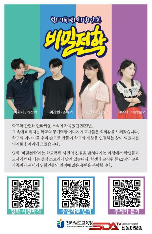 ¿µÈ´Â Àü³²±³À°TV À¯Æ©ºê¿¡¼ ´©±¸³ª °¨»óÇÒ ¼ö ÀÖ´Ù. Çб³¿¡¼ ±³»ç¿Í ÇлýµéÀÌ ÇÔ²² ¿µÈ¸¦ °¨»óÇϰí, Åä·ÐÇÒ ¼ö ÀÖ´Â ¼ö¾÷ÀÚ·áµµ Á¦°øµÈ´Ù. ¼ö¾÷ÀÚ·á¿¡´Â Æ÷½ºÅÍ Åì¾Æº¸±â , ¿µÈ Á¦ÀÛ µû¶óÀâ±â, ¸¶À½ÀÌ °¡´Â Àι° °í¸£±â, Àι°ÀÇ ¸¶À½ ¹Ù¶óº¸±â, ¿µÈ ¼Ó »ó¡ ÆÄ¾ÇÇϱâ, ³ª¾Æ°¥ ±æ¿¡ ¸¶À½ ¸ðÀ¸±â µî ´Ù¾çÇÑ ÁÖÁ¦ÀÇ È°µ¿ °úÁ¦°¡ ´ã°å´Ù.