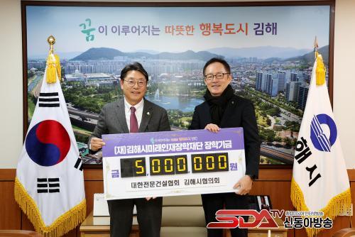 [½Åµ¿¾Æ¹æ¼Û´º½º=ÃÖ¼ÛÈ­±âÀÚ] ±èÇØ½Ã¹Ì·¡ÀÎÀçÀåÇÐÀç´Ü(ÀÌ»çÀå ÇöÁ¾¿ø)Àº 26ÀÏ ´ëÇÑÀü¹®°Ç¼³Çùȸ ±èÇØ½ÃÇùÀÇȸ(ȸÀå ¹ÚÇö±æ)¿¡¼­ ÀåÇбâ±Ý 500¸¸¿øÀ» ±âŹÇß´Ù°í ¹àÇû´Ù. ÇùÀÇȸ´Â Áö³­ 2018³âºÎÅÍ ÀåÇÐ±Ý ±âºÎ¸¦ À̾î¿À°í ÀÖÀ¸¸ç ¿ÃÇØ°¡ 6¹øÂ°ÀÌ´Ù.