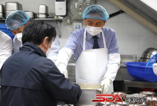 11½Ã¿¡´Â ¼ö¼­Á¾ÇÕ»çȸº¹Áö°ü 1Ãþ ¼Ò´ã½Ä´ç¿¡¼­ ¹«·á±Þ½Ä ºÀ»ç¸¦ Çϸç Ãë¾à°èÃþ ¾î¸£½ÅµéÀ» ¸¸³­´Ù. À̰÷Àº Àα٠¼ö¼­6´ÜÁö¿¡ °ÅÁÖÇÏ´Â ¸¸ 65¼¼ ÀÌ»ó ¾î¸£½Å 210¿©¸í¿¡°Ô ÁÖ6ȸ Á¡½É ½Ä»ç¸¦ Á¦°øÇÑ´Ù. À̳¯ »õÇØ Ư½ÄÀ¸·Î ³ª¿Â ¶±±¹À» Á÷Á¢ ¶°ÁÖ°í, ¾î¸£½Åµé°ú »õÇØ Àλç¿Í ´ö´ãÀ» ³ª´©¸ç µû¶æÇÑ »õÇØ¸¦ ¸ÂÀ» °èȹÀÌ´Ù.