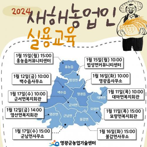 [½Åµ¿¾Æ¹æ¼Û=ÀÌÁöÇö±âÀÚ] ¿µ±¤±º(±º¼ö °­Á¾¸¸)Àº ¿À´Â 1¿ù 11ÀϺÎÅÍ ´ë¸¶¸éÀ» ½ÃÀÛÀ¸·Î 1¿ù 17ÀϱîÁö °¢ À¾¡¤¸é¿¡¼­ ³ó¾÷ÀÎ 1,000¸íÀ» ´ë»óÀ¸·Î 10ȸ¿¡ °ÉÃÄ ¡®2024³â »õÇØ ³ó¾÷ÀÎ ½Ç¿ë±³À°¡¯À» ½Ç½ÃÇÑ´Ù°í ¹àÇû´Ù.