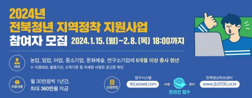 ½Åû Èñ¸ÁÀÚ´Â ÀüºÏû³â Áö¿ªÁ¤Âø Áö¿ø»ç¾÷ ´©¸®Áý ¶Ç´Â ÀüºÏû³âÇãºê¼¾Å͸¦ ÅëÇØ ¿Â¶óÀÎÀ¸·Î ½ÅûÇÒ ¼ö ÀÖ´Ù. Á¢¼ö ±â°£Àº 1¿ù 15ÀÏ(¿ù)ºÎÅÍ 2¿ù 8ÀÏ(¸ñ)±îÁö´Ù.