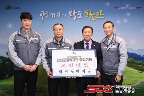 [½Åµ¿¾Æ¹æ¼Û ÇÔ¾È=À̽ŵ¿±âÀÚ]ÇԾȱº Ä¥¼­¸é ¼ÒÀç Ÿ²ÆäÀÌÆÛ¢ßÀº 15ÀÏ ÇԾȱºÀåÇÐÀç´Ü¿¡ Áö¿ªÀÎÀç À°¼ºÀ» À§ÇÑ ÀåÇбâ±Ý 5000¸¸¿øÀ» ±âŹÇß´Ù.