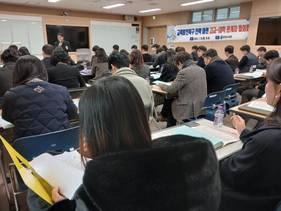 »çÁø=±³À°¹ßÀüƯ±¸ ÃßÁø Áö¿ª ´ëÇÐ, °íµîÇб³, ÁöÀÚü °ü°èÀÚµéÀÌ ÇùÀÇȸ¸¦ °®°í ÀÖ´Ù.