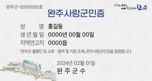 26ÀÏ ¿ÏÁÖ±º¿¡ µû¸£¸é ¿ÏÁÖ»ç¶û±º¹ÎÁ¦µµ´Â ÁÖ¹ÎÀÌ ¾Æ´Ñ ÃâÇâÀÎ, Áö¿ª ¿¬°íÀÚ(Çб³, Á÷Àå, ±ºº¹¹«), °íÇâ»ç¶û±âºÎÀÚ ¹× ¸í¿¹±º¹ÎÀ» ´ë»óÀ¸·Î ¿ÏÁÖ»ç¶û±º¹ÎÁõÀ» ¹ß±ÞÇØÁÖ´Â Á¦µµ´Ù.