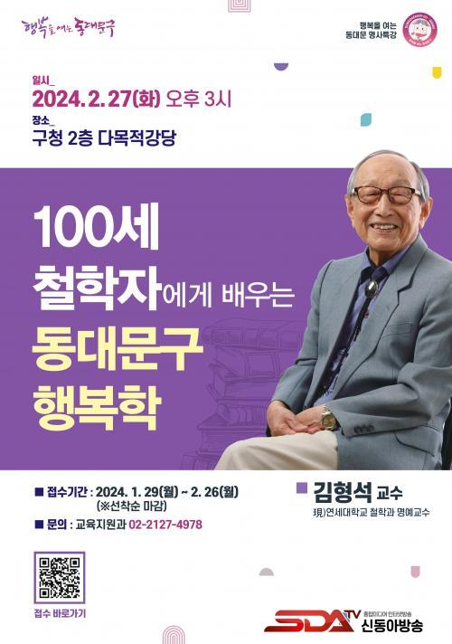 À̹ø Ư°Àº öÇÐÀÚ ±èÇü¼® ±³¼ö°¡ 100³âÀÇ ÀλýÀ» »ì¾Æ¿À¸ç °ÞÀº °æÇèÀ» ÅëÇØ ÇູÇÏ°í °Ç°ÇÏ°Ô »ç´Â ÁöÇý¸¦ Àü´ÞÇÒ ¿¹Á¤ÀÌ´Ù.