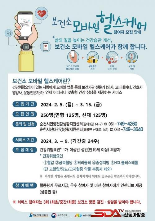 ¸ðÁýÀοøÀº ÃÑ 250¸íÀÌ¸ç ½Åû ±â°£Àº 3¿ù 15ÀϱîÁöÀÌ´Ù. ½ÅûÀº ¿¬Çâ°Ç°»ýȰÁö¿ø¼¾ÅÍ(¢Ï061-749-4260) ¶Ç´Â ½Å´ë°Ç°»ýȰÁö¿ø¼¾ÅÍ(¢Ï061-749-3640)¿¡ ÀüÈ·Î ÇÒ ¼ö ÀÖÀ¸¸ç, ¸ðÁýÀοø Ãʰú ½Ã Á¶±â¿¡ ¸¶°¨µÉ ¼ö ÀÖ´Ù.