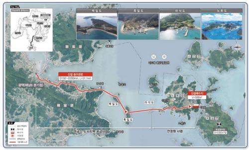 »ç¾÷Àº ±¤¿ª »ó¼öµµ ÇØ³² ºÐ±âÁ¡¿¡¼ ³ëÈÀ¾±îÁö »ó¼ö °ü·Î 31.8§°(À°»ó °ü·Î 21.9§°, ÇØÀú °ü·Î 9.9§°), ¹è¼öÁö 1°³¼Ò, °¡¾ÐÀå 2°³¼Ò µî ½Ã¼³ ¿ë·® 1,000§©/ÀÏÀÇ ½Ã¼³À» ¼³Ä¡ÇÑ´Ù.