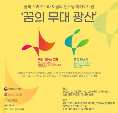 ±¤»ê±¸´Â ¹®ÈüÀ°°ü±¤ºÎ°¡ ÁÖÃÖÇϰí Çѱ¹¹®È¿¹¼ú±³À°ÁøÈï¿øÀÌ ÁÖ°üÇÏ´Â ²ÞÀÇ ¿ÀÄɽºÆ®¶ó‧²ÞÀÇ ´í½ºÆÀ ¿î¿µ »ç¾÷¿¡ ¼±Á¤µÅ Áö¿ª ¾Æµ¿‧û¼Ò³âÀÌ À½¾Ç°ú ÃãÀ» ±â¹ÝÀ¸·Î ¹®È¿¹¼ú Ȱµ¿À» ÆîÄ¡¸ç °Ç°ÇÏ°Ô ¼ºÀåÇϵµ·Ï µ½´Â »ç¾÷À» ÁøÇàÇØ ¿Ô´Ù.