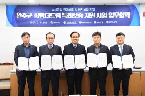 Áö³ 14ÀÏ ¿ÏÁÖ±ºÀº À¯ÈñÅ ¿ÏÁÖ±º¼ö, ÀüºÏ½Å¿ëº¸ÁõÀç´Ü ÇÑÁ¾°ü ÀÌ»çÀå, NH³óÇùÀºÇà ±è´ëÈ£ ÀüÁÖ¿ÏÁֽñºÁöºÎÀå, ÀüºÏÀºÇà ¼µÎ¿ø ºÎÇàÀå, ÇϳªÀºÇà ¿ì½Â±¸ ±¤ÁÖÀüºÏ¿µ¾÷º»ºÎÀåÀÌ Âü¼®ÇÑ °¡¿îµ¥ Ư·Êº¸Áõ »ç¾÷ Çù¾à½ÄÀ» °¡Á³´Ù.