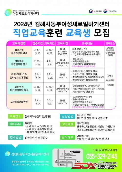 Á÷¾÷±³À°ÈƷûý ¸ðÁý°ú ¿©¼º Ãë¾÷¿¡ °üÇÑ ÀÚ¼¼ÇÑ ³»¿ëÀº ±èÇØ½Ãµ¿ºÎ¿©¼º»õ·ÎÀÏÇϱ⼾ÅÍ(¢Ï055-329-2145)·Î ¹®ÀÇÇÏ¸é µÈ´Ù.