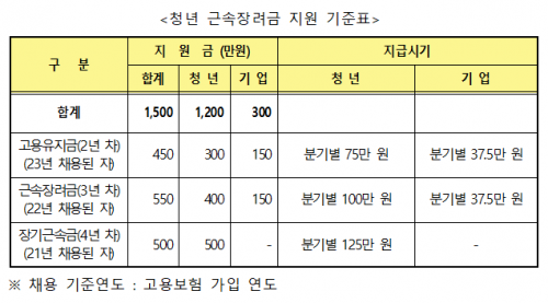 ¼±Á¤ ±â¾÷¿¡´Â ¡â2~3³â Â÷ 150¸¸ ¿øÀ» Áö¿øÇϰí, û³â Ãë¾÷ÀÚÀÇ °æ¿ì ¡â2³â Â÷´Â ¿¬ 300¸¸ ¿ø ¡â3³â Â÷ 400¸¸ ¿ø ¡â4³â Â÷ 500¸¸ ¿øÀ» Áö¿øÇÑ´Ù.