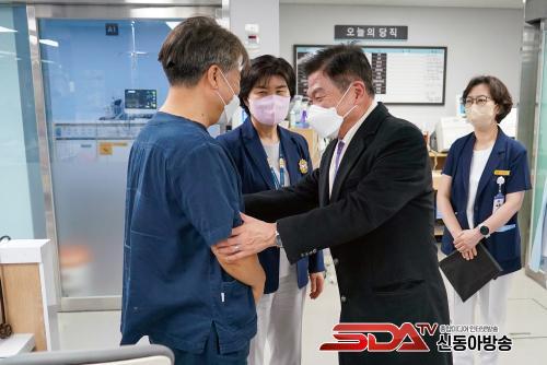 [½Åµ¿¾Æ¹æ¼Û µ¿´ë¹®=À̽ŵ¿±âÀÚ]ÀÌÇÊÇü µ¿´ë¹®±¸Ã»ÀåÀº 23ÀÏ Àü°øÀÇ ÆÄ¾÷ µî ÀÇ»ç Áý´ÜÇൿ¿¡ ´ëÇÑ º¸°ÇÀÇ·áÀç³­ À§±â°æº¸°¡ ¡®°æ°è¡¯¿¡¼­ ¡®½É°¢¡¯ ´Ü°è·Î °Ý»óÇÔ¿¡ µû¶ó, °ü³» °æÈñ´ëÇб³º´¿ø ¹× »ïÀ°¼­¿ïº´¿øÀ» ¹æ¹®ÇÏ¿© Áø·á»óȲ ¹× ÀÀ±ÞÀÇ·áü°è¸¦ Á÷Á¢ Á¡°ËÇϰí ÀÇ·á°ø¹é »óȲ¿¡¼­ ¾î·Á¿òÀ» °Þ°í ÀÖ´Â ÇöÀå ÀÇ·áÁøÀ» °Ý·ÁÇß´Ù.