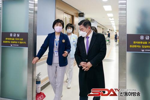 ÇÑÆí º¸°ÇÀÇ·áÀç³ À§±â°æº¸°¡ ¡®°æ°è¡¯¿¡¼ ¡®½É°¢¡¯ ´Ü°è·Î °Ý»óÇÑ Áö³ 23ÀÏ, ÀÌÇÊÇü µ¿´ë¹®±¸Ã»ÀåÀº °ü³» °æÈñ´ëÇб³º´¿ø°ú »ïÀ°¼¿ïº´¿øÀ» ¹æ¹®ÇÏ¿© Áø·á»óȲ ¹× ÀÀ±ÞÀÇ·áü°è¸¦ Á÷Á¢ Á¡°ËÇϰí ÀÇ·á°ø¹é »óȲ¿¡¼ ¾î·Á¿òÀ» °Þ°í ÀÖ´Â ÇöÀå ÀÇ·áÁøÀ» °Ý·ÁÇß´Ù.