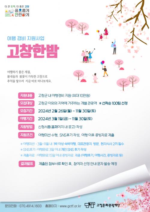 Áö¿ø´ë»óÀº °íⱺ ÀÌ¿Ü Áö¿ª¿¡ °ÅÁÖÇÏ´Â °³º° °ü±¤°´À¸·Î, »çÀü ½ÅûÀÌ ÇʼöÀÌ´Ù. ±â°£Àº 3~11¿ù µ¿¾È °íⱺ Àü¿ªÀ» ÀÚÀ¯·Ó°Ô ¿©ÇàÇÏ¸ç ¡®°íâÇѹ㡯 ¿©Çà¹Ì¼ÇÀ» ¼öÇàÇϰí, ÀÌÈÄ SNS¿¡ ¿Ã¸° ¿©ÇàÈı⠰Խù°À» Á¦ÃâÇÏ¸é µÈ´Ù.