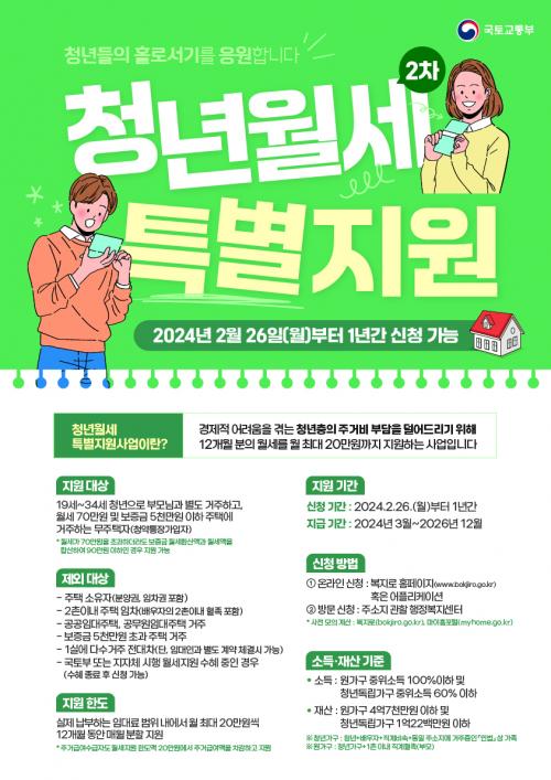 Áö¿ø ´ë»óÀº º¸Áõ·á 5õ¸¸ ¿ø ÀÌÇÏÀ̸鼭 ¿ù¼¼ 70¸¸ ¿ø ÀÌÇÏ ÁÖÅÿ¡ ºÎ¸ð¿Í µû·Î °ÅÁÖÇÏ´Â ¹«ÁÖÅà û³â(19~34¼¼)ÀÌ´Ù.