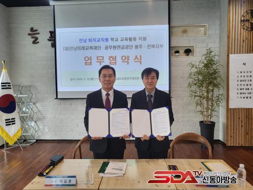 [½Åµ¿¾Æ¹æ¼Û Àü³²¿©¼ö=À̽ŵ¿±âÀÚ]Àü³²¹Ì·¡±³À°Àç´Ü À̱æÈÆ ¿øÀå°ú °ø¹«¿ø¿¬±Ý°ø´Ü ±¤ÁÖ¡¤ÀüºÏ ÁöºÎ(ÁöºÎÀå Á¶¿µÃ¶)°¡ 12ÀÏ Àü³²±³À°Ã»±³À°¿¬±¸Á¤º¸¿ø¿¡¼­ ¾÷¹«Çù¾àÀ» ¸Î°í, ÅðÁ÷ ±³Á÷¿øµéÀÇ Çб³±³À°Áö¿ø Ȱ¼ºÈ­¿¡ ³ª¼¹´Ù.