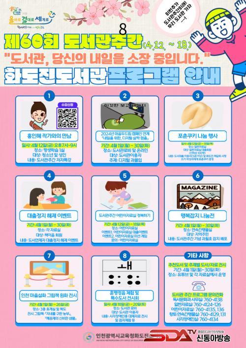 µµ¼°üÁÖ°£ Ưº° Çà»ç´Â ¸¶À½ µÎµå¸² Ä·ÆäÀÎ, ÇູÀâÁö ³ª´®Àü, Çà¿î°úÀÚ ³ª´® Çà»ç, ¾î¸°ÀÌ ÀÚ·á½Ç Á¤º¹Çϱâ, ´ëÃâÁ¤Áö ÇØÁ¦ µîÀ» ¿î¿µÇÑ´Ù. À̹ۿ¡ ÀÎõ ¸¶À»¼³È ±×¸²Ã¥ ¿øÈ Àü½Ã, Ãßõµµ¼ Àü½Ã µî ´Ù¾çÇÑ µµ¼ Àü½Ã¸¦ ¿¾î 4¿ù ÇÑ ´Þ°£ Áñ°Å¿î µµ¼°ü ÀÌ¿ëÀÌ µÉ ¼ö ÀÖµµ·Ï ¿î¿µÇÑ´Ù.