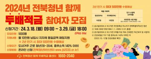 ¡®ÀüºÏû³â ÇÔ²² µÎ¹èÀû±Ý¡¯À» ÅëÇØ û³âÀÌ ¿ù 10¸¸¿ø¾¿ 2³â°£ ÀúÃàÇÏ¸é º»ÀÎ ÀúÃà¾× 240¸¸¿ø°ú Àå¼ö±º Áö¿ø¾× 240¸¸¿ø, ±×¸®°í ÀÌÀÚ¸¦ ÇÕ»êÇØ ÃÖ´ë 500¸¸¿ø±îÁö ¸ñµ·À» Çü¼ºÇÒ ¼ö ÀÖ´Ù.