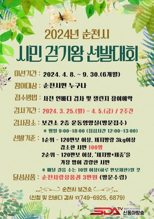 [½Åµ¿¾Æ¹æ¼Û ¼øÃµ=±è¿ëÈÆ ±âÀÚ] ¼øÃµ½Ã(½ÃÀå ³ë°ü±Ô)´Â ÀÏ»ó»ýȰ ¼Ó °È±â Ȱ¼ºÈ­ ÇÁ·ÎÁ§Æ®ÀÇ ÀÏȯÀ¸·Î ¿À´Â 4¿ù 5ÀϱîÁö ½Ã¹Î °È±â¿Õ ¼±¹ß´ëȸ¿¡ Âü¿©ÇÒ ¼øÃµ½Ã¹ÎÀ» ¸ðÁýÇÑ´Ù°í ¹àÇû´Ù.