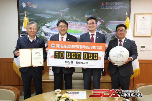 NH³óÇùÀºÇà ±èÇØ½ÃÁöºÎ´Â Áö³ 1990³âºÎÅÍ ÀåÇÐÀç´Ü¿¡ ²ÙÁØÈ÷ ±âŹÀ» À̾î¿À¸ç ´©Àû¾×Àº 4¾ï 4,000¸¸¿øÀÌ´Ù. ¶Ç Áö³ÇØ 12¿ù °ü³» Àú¼ÒµæÃþ°ú ¾Æµ¿º¹Áö½Ã¼³¿¡ °Ü¿ïÀ̺Ұú ¼Ò½ÃÁö¼¼Æ®¸¦ ±âŹÇÏ´Â µî ²ÙÁØÈ÷ »çȸ°øÇåȰµ¿¿¡ Âü¿©Çϰí ÀÖ´Ù.