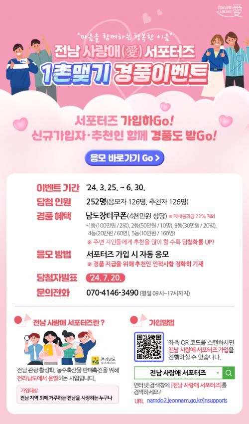 Àü³² »ç¶û¾Ö ¼Æ÷ÅÍÁî´Â Áö¿ª ³ó¼öÃà»ê¹° ÆÇ¸Å ÃËÁø, °ü±¤ Ȱ¼ºÈ µî Áö¿ª ¹ßÀü¿¡ ÇÊ¿äÇÑ »õ·Î¿î ¼ºÀå µ¿·ÂÀ» È®º¸Çϱâ À§ÇØ 2022³â 9¿ùºÎÅÍ Àü³² ¿Ü Áö¿ª °ÅÁÖÀÚ¸¦ ´ë»óÀ¸·Î 100¸¸ ¸í ¸ðÁýȰµ¿À» ÆîÄ¡°í ÀÖ´Ù. ÇöÀç °¡ÀÔÀÚ 45¸¸ ¸í µ¹ÆÄ¸¦ ¾ÕµÎ°í ÀÖ´Ù.