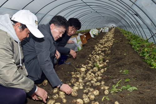À̳¯ Á¤ ½ÃÀåÀº Àü±¹ Á¦ÀÏÀÇ °¨ÀÚ ½Ã¼³ÇϿ콺¸¦ ¹æ¹®ÇØ ¼öÈ®ÀÇ ½ÃÀÛ¿¡ µ¿ÂüÇß´Ù. Á¤ ½ÃÀåÀº ±èÀç±Ç ³ó°¡(±¤È°13±æ 133)¸¦ ¹æ¹®ÇØ ¼öÈ® ÇöÀå¿¡¼ ÇÔ²² ±¸½½¶¡À» Èê·ÈÀ¸¸ç ¾Õ¼± 25ÀÏ Ã¹ ¼öÈ® ÀÌÈÄ º»°ÝÀûÀ¸·Î ÀÌ·ïÁú °¨ÀÚ ¼öÈ® ÇöȲÀ» »ìÇǰí ÁֹεéÀÇ ¾Ö·Î»çÇ×À» ûÃëÇß´Ù.