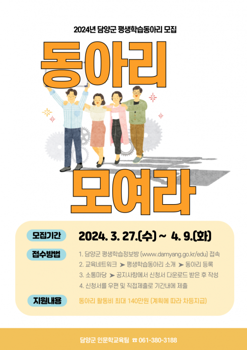 ¿ÃÇØ ¸ðÁý ±â°£Àº ¿À´Â 4¿ù 9ÀϱîÁöÀÌ¸ç µ¿¾Æ¸® Ȱµ¿ÀÌ °¡´ÉÇÑ ÇнÀ°ø°£À» È®º¸ ÈÄ 8¸í ÀÌ»óÀÇ ¼ºÀÎÀ¸·Î ±¸¼ºµÈ ¸ðÀÓÀÌ¸é ´©±¸³ª ½ÅûÇÒ ¼ö ÀÖ´Ù. ÃÖ´ë 140¸¸ ¿øÀÇ È°µ¿ºñ¸¦ °èȹ¿¡ µû¶ó 6°³ÀÇ µ¿¾Æ¸®¿¡ Â÷µî Áö±ÞÇÒ °èȹÀÌ´Ù.