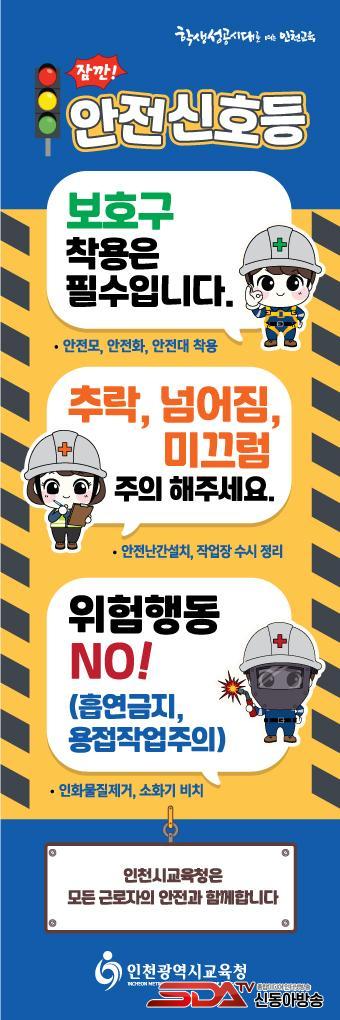 ÀÎõ½Ã±³À°Ã»Àº °ø»ç ÇöÀå ±Ù·ÎÀÚ¿¡°Ô Á÷°üÀûÀ̰í Ä£±ÙÇÏ°Ô ¾ÈÀü ¹®±¸¸¦ Àü´ÞÇØ ÀÛ¾÷ Áß »ç°í¸¦ ¹æÁöÇϰíÀÚ ¹è³Ê ÇüÅÂÀÇ ¡®¾ÈÀü½ÅÈ£µî¡¯À» Á¦ÀÛÇß´Ù.