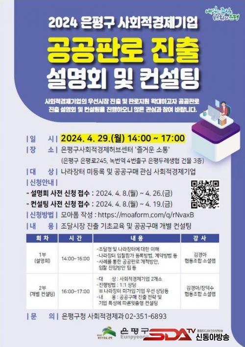 ÀºÆò±¸ »çȸÀû°æÁ¦Çãºê¼¾ÅÍ 3Ãþ ¡®Áñ°Å¿î ¼ÒÅ롯¿¡¼ 1ºÎ´Â °ø°ø Á¶´Þ ½ÃÀå ÁøÃâ¿¡ °üÇÑ ±âÃʱ³À° ¹× ¼³¸íȸ(±è°æ¾Æ °»ç, ¿ÀÈÄ 2½ÃºÎÅÍ 4½Ã±îÁö), 2ºÎ´Â ±â¾÷ Ư¼º¿¡ µû¸¥ ¸ÂÃãÇü ÄÁ¼³ÆÃ(±è°æ¾Æ‧Àå´ö¼ö °»ç, ¿ÀÈÄ 4½ÃºÎÅÍ 5½Ã±îÁö) ÃÑ 2ȸÂ÷·Î ±¸¼ºµÈ´Ù.