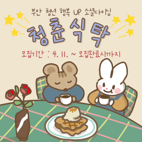 ºÎ¾È±º¿¡¼ Ȱµ¿ÇÏ´Â 18¼¼~45¼¼ û³âÀ̶ó¸é ´©±¸³ª Âü¿© °¡´ÉÇϸç, ¸Å¿ù ÃÊ ºÎ¾Èû³âÅå ä³ÎÀ» ÅëÇØ ¼±Âø¼ø ¸ðÁýÀ¸·Î ÁøÇàÇÒ ¿¹Á¤ÀÌ´Ù. ù ȸÂ÷ ÇÁ·Î±×·¥Àº ¡®±âȹ Ãʺ¸ÀÚ¸¦ À§ÇÑ ¼º°øÀûÀÎ Çà»ç ±âȹ ¹æ¹ý¡¯À̶ó´Â ÁÖÁ¦·Î ÁøÇàµÇ¸ç, ½Åû±â°£Àº 4¿ù 11ÀÏ ¸ñ¿äÀϺÎÅÍÀÌ´Ù.