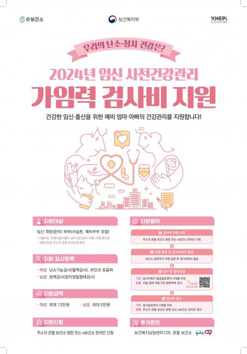Áö¿ø ´ë»óÀº ÀÓ½ÅÀ» Èñ¸ÁÇϰųª °èȹÇϰí ÀÖ´Â ºÎºÎ(»ç½ÇÈ¥, ¿¹ºñºÎºÎ Æ÷ÇÔ)´Ù. ¿Â¶óÀÎ(eº¸°Ç¼Ò) ¶Ç´Â ÁÖ¼ÒÁö º¸°Ç¼Ò·Î ±¸ºñ¼·ù¸¦ °®Ãç »çÀü ½Åû ÈÄ ¹ß±Þ¹ÞÀº °Ë»çÀÇ·Ú¼¸¦ ÀÇ·á±â°ü¿¡ Á¦ÃâÇÏ°í °Ë»ç¸¦ ¹ÞÀ¸¸é µÈ´Ù.