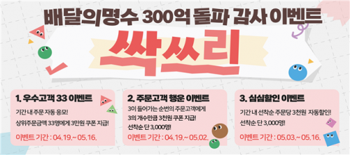 À̹ø À̺¥Æ®´Â ¿ì¼ö°í°´ 33À̺¥Æ®, ÁÖ¹®°í°´ Çà¿î À̺¥Æ®, ½É½ÉÇÒÀÎ À̺¥Æ® µî ´Ù¾çÇÏ°Ô ±¸¼ºµÇ¾î ÀÖÀ¸¸ç ÀÌ ±â°£ µ¿¾È ¹è´ÞÀÇ ¸í¼ö¸¦ ÅëÇØ ÁÖ¹®ÇÑ °í°´Àº ÀÚµ¿À¸·Î ÀÀ¸ðµÇ¸ç ÃÖ´ë 3¸¸¿øÀÇ ÇÒÀÎÄíÆù ÇýÅÃÀ» ¹ÞÀ» ¼ö ÀÖ´Ù.