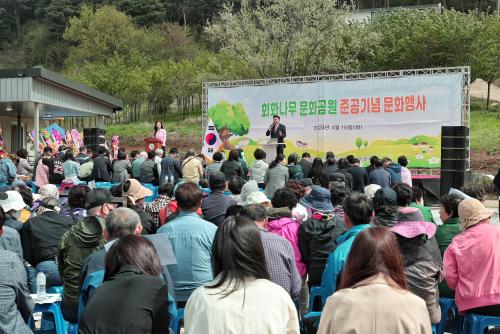¿À¼ºÈ¯ ´çÁø½ÃÀåÀº ¡°È¸È³ª¹« ¹®È°ø¿ø ¹®ÈÇà»ç°¡ ¹®ÈÀ¯»êÀ» Ȱ¿ëÇØ ¸é¹ÎµéÀÇ ÀںνÉÀ» ³ôÀÌ°í ¼Û»ê¸éÀ» ³Î¸® ¾Ë¸± ¼ö ÀÖ´Â ¶æ±íÀº Çà»ç°¡ µÇ±æ ¹Ù¶õ´Ù¡±¶ó¸ç, ¡°È¸È³ª¹« ¹®È°ø¿øÀÌ È¸È³ª¹«ÀÇ ¿ª»ç ¹®ÈÀû °¡Ä¡¸¦ º¸Á¸Çϰí, ´çÁøÀ» ´ëÇ¥ÇÏ´Â ¶Ç ÇϳªÀÇ °ø°£ÀÌ µÉ ¼ö ÀÖ±æ ±â´ëÇÑ´Ù¡±¶ó°í ÀüÇß´Ù.