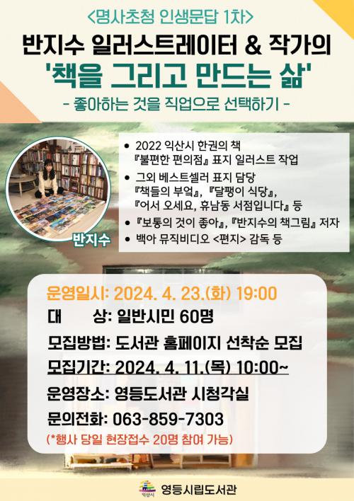 ¿¹¼ú ¹× ¹®ÇÐ ºÐ¾ßÀÇ ¸í»ç·Î ÃÊûµÈ ¹ÝÁö¼ö ÀÏ·¯½ºÆ®·¹ÀÌÅÍ´Â 'Ã¥À» ±×¸®°í ¸¸µå´Â »î : ÁÁ¾ÆÇÏ´Â °ÍÀ» Á÷¾÷À¸·Î ¼±ÅÃÇϱâ'¶ó´Â ÁÖÁ¦·Î °¿¬À» ÁøÇàÇÑ´Ù.