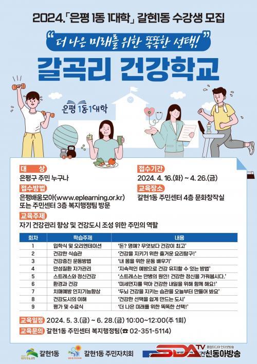 À̹ø ±³À°Àº ³»´Þ 3ÀÏ °³°ÇØ ¸ÅÁÖ ±Ý¿äÀÏ ¿ÀÀü 10½ÃºÎÅÍ 2½Ã°£ ÃÑ 9ȸ ¿î¿µµÈ´Ù. °Ç° ½Ä½À°ü, °Ç°ÁõÁø ¿îµ¿¹æ¹ý, ¾à ¹Ù·Î¾²±â, ½ºÆ®·¹½º¿Í Á¤½Å°Ç°, ȯ°æ°ú °Ç°, Ä¡¸Å¿¹¹æ ÀÎÁö±â´ÉÇâ»ó, °Ç°µµ½ÃÀÇ ÀÌÇØ µî ´Ù¾çÇÑ °Ç°°Á·Π±¸¼ºµÈ´Ù.