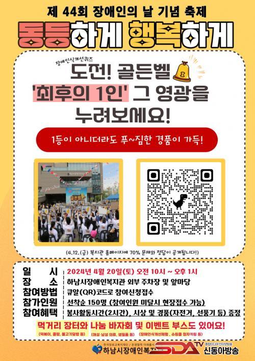 µµÀü °ñµçº§ Âü°¡½ÅûÀº 4¿ù19ÀÏ(±Ý)±îÁö Çϳ²½ÃÀå¾ÖÀκ¹Áö°ü ȨÆäÀÌÁö (Æ÷½ºÅÍ QRÄÚµå ¹× ¸µÅ©https://forms.gle/bJjJDdR1yLdfwXnr5)¸¦ ÅëÇØ Âü°¡ ½ÅûÇÒ ¼ö ÀÖÀ¸¸ç, Âü°¡Àڵ鿡°Ô´Â ½Ã»ó ¹× Ãß÷À» ÅëÇØ ´Ù¾çÇÑ »óǰÀ» ÁõÁ¤ÇÏ°í ºÀ»çȰµ¿ ½Ã°£ÀÌ ÀÎÁ¤µÈ´Ù.