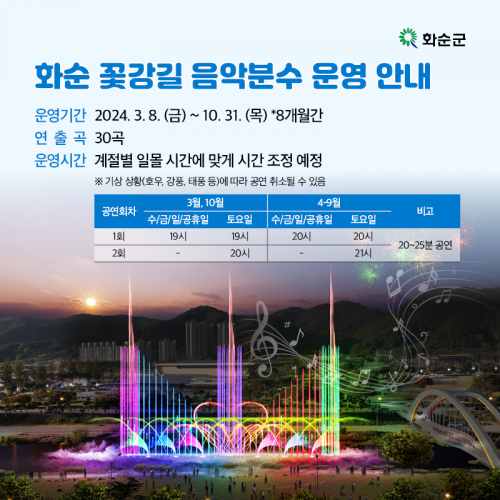 ÀÌ´Â ÀæÀº °ø¿¬¿¡ µû¸¥ Èñ¼Ò¼º »ó½Ç, ÁֹεéÀÇ ¿©°¡ Ȱµ¿ ½Ã°£ ¡¤ »ýȰ¹æ½ÄÀÇ º¯È µî ´Ù¾çÇÑ ÀǰßÀ» Á¾ÇÕÀûÀ¸·Î °í·ÁÇÑ °ÍÀ¸·Î, °ø¿¬ ÈÞ¹«ÀÏÀº ½Ã¼³¹° ¹× Àåºñ À¯Áö°ü¸®¡¤Á¡°Ë, ÇÏõȯ°æ Á¤ºñ µîÀ» ÇÏ¸é¼ ÄèÀûÇÑ ÁÖº¯ ȯ°æ Á¶¼º ¹× ÃÖÀûÀÇ À½¾ÇºÐ¼ö °ø¿¬¿¡ ÃÖ¼±À» ´ÙÇÒ ¹æÄ§ÀÌ´Ù.