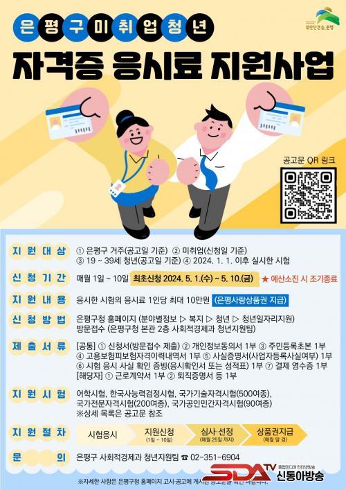 [½Åµ¿¾Æ¹æ¼Û ÀºÆò±¸=À̽ŵ¿±âÀÚ]ÀºÆò±¸´Â ³»´Þ 1ÀϺÎÅÍ ¹ÌÃë¾÷ û³âµéÀÇ Ãë¾÷ Áغñ ºñ¿ë ºÎ´ãÀ» ´ú¾îÁÖ°í Ãë¾÷ °æÀï·ÂÀ» ³ôÀ̱â À§ÇØ ¡®ÀÚ°ÝÁõ ÀÀ½Ã·á Áö¿ø»ç¾÷¡¯À» ½ÃÀÛÇÑ´Ù°í ¹àÇû´Ù.