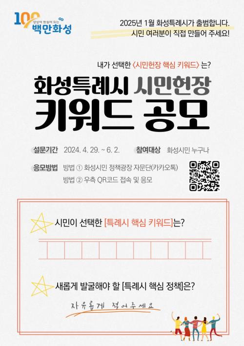 °ø¸ðÀüÀº ¿À´Â 29ÀϺÎÅÍ 6¿ù 2ÀϱîÁö ÁøÇàµÇ¸ç È­¼º½Ã¹ÎÀ̶ó¸é ´©±¸³ª QR ÄÚµå ¹× È­¼º½Ã ȨÆäÀÌÁö ¹è³Ê¸¦ ÅëÇØ Âü¿©ÇÒ ¼ö ÀÖ´Ù. ½Ã´Â È­¼º½Ã¹Î Á¤Ã¥±¤Àå ÀÚ¹®´Ü ´ë»ó īī¿ÀÅå ¼³¹®°ú È¿¸¶¶óÅæ´ëȸ¡¤¹î³îÀÌ ÃàÁ¦ µî Çà»çÀå¿¡¼­ ÇöÀå ÀÇ°ß ¼ö·Åµµ º´ÇàÇÒ °èȹÀÌ´Ù.