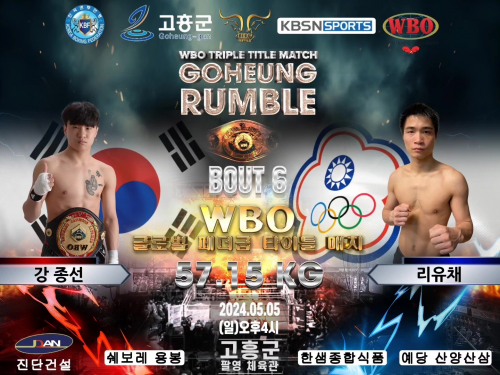 À̹ø ŸÀÌÆ²¸ÅÄ¡¿¡´Â ´ëÇѹα¹ °­Á¾¼± ¼±¼ö(ÀüÀϺ¹½Ì)¿Í ´ë¸¸ ¸®À¯Ã¤ ¼±¼ö(KENJONº¹½Ì)ÀÇ WBO ¼¼°èŸÀÌÆ² ¸ÅÄ¡ ÀüÃÊÀüÀÎ ±Û·Î¹ú Æä´õ±Þ ŸÀÌÆ²¸ÅÄ¡°¡ ¸ÞÀÎ °æ±â·Î ÆîÃÄÁ³´Ù.