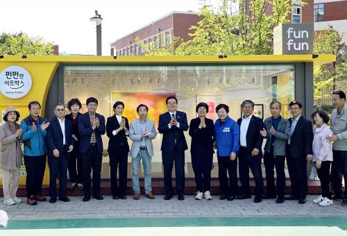 À̹ø¿¡ Á¤½Ä °³°üÇÑ ÆÝÆÝÇÑ ¾ÆÆ®¹Ú½º´Â ±¤Àå, °ø¿ø µî ÁֹεéÀÌ ÀÚÁÖ Ã£´Â °÷¿¡ ¿¹¼úÀÛǰ Àü½Ã °ø°£À» ¸¶·ÃÇÏ¿© Æò¹üÇÑ ÀÏ»ó¿¡ Áñ°Å¿ò°ú Ȱ·ÂÀ» Á¦°øÇϰíÀÚ ºÏ±¸°¡ Áö³­ 2¿ù Á¶¼ºÇÑ ÄÁÅ×À̳ÊÇü Àü½Ã°üÀÌ´Ù.